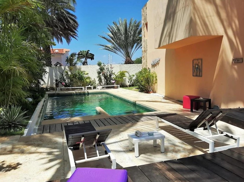 Nuestras instalaciones ofrecen una experiencia única, con comodidades como teléfono, aire acondicionado, agua caliente, secador de pelo, climatizador, wifi, piscina, hamacas caribeñas, nevera ejecutiva y pantalla de plasma.